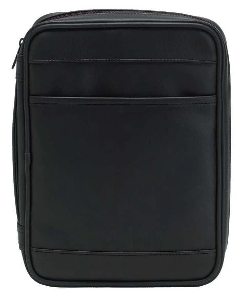 Nubuck leather has the soft look and feel of suede, but is much more durable. This simple Bible cover design, called The Executive, is accented by a silver fish emblem on the side carrying handle. It also features lay-flat construction, nylon reinforced stitching, and non-rusting, self-repairing zipper. Can accommodate a Bible or book up to about 7 3/8″ x 10 ¼” x 2″. Size: X-Large