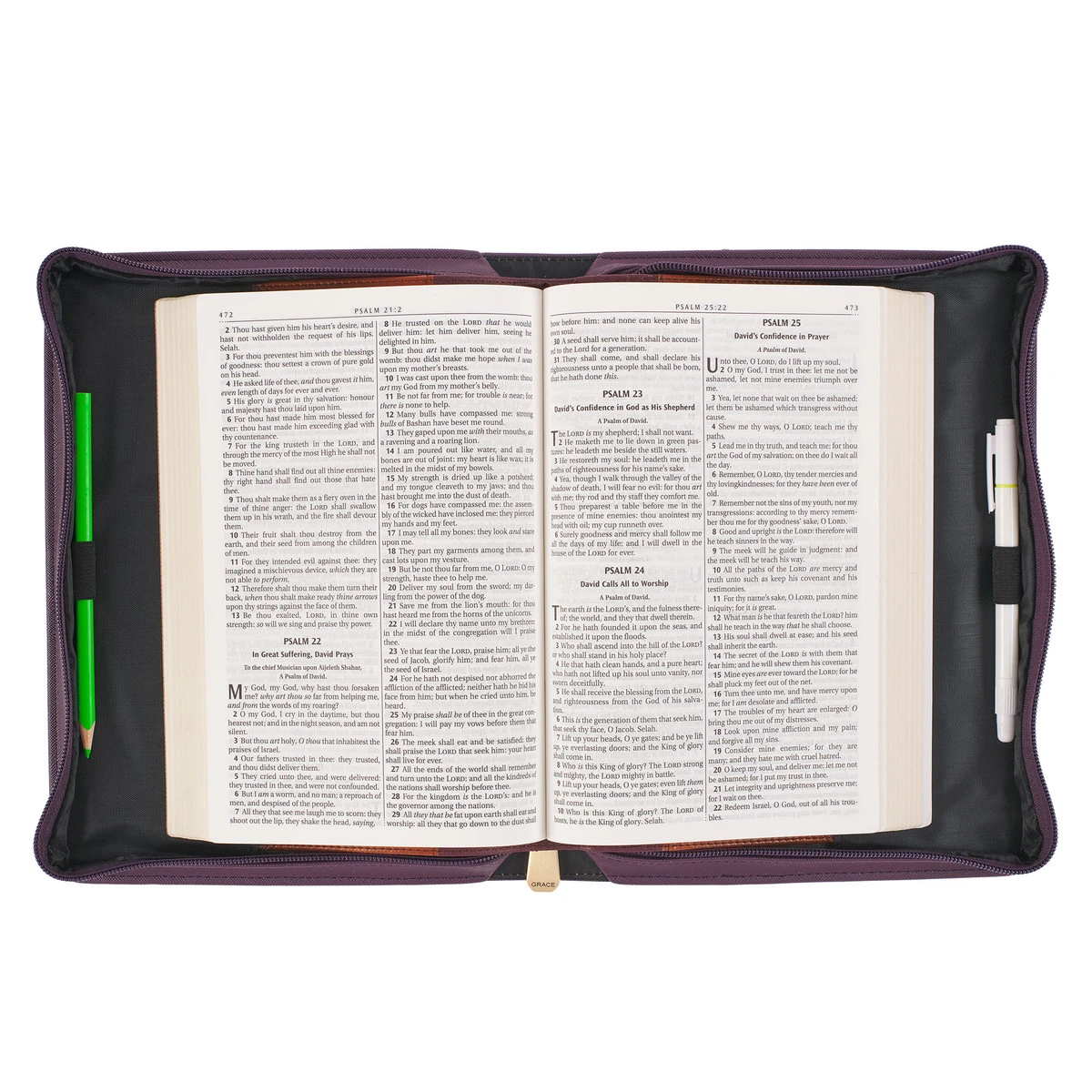 Rejoice in the never ending supply of God’s mercy every time you open the His Mercies Are New Dark Amethyst Purple Fashion Bible Cover to read your Bible.
