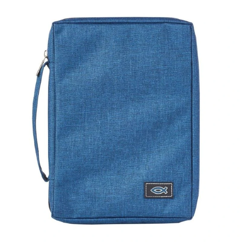 BC: Poly-canvas Blue Large Bible Cover With Fish Badge