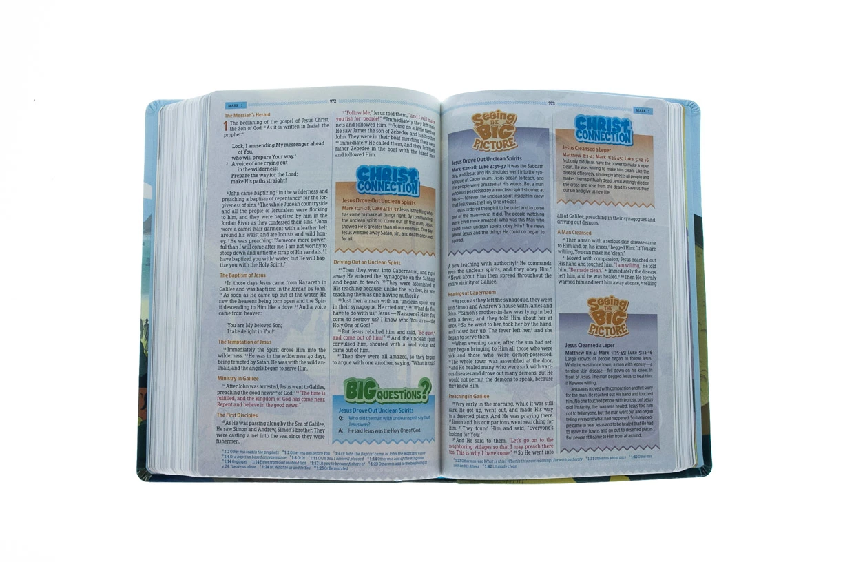 A full-color, fully designed Bible that allows kids to engage in Bible reading and study as never before, seeing scenes from the Bible literally pop off