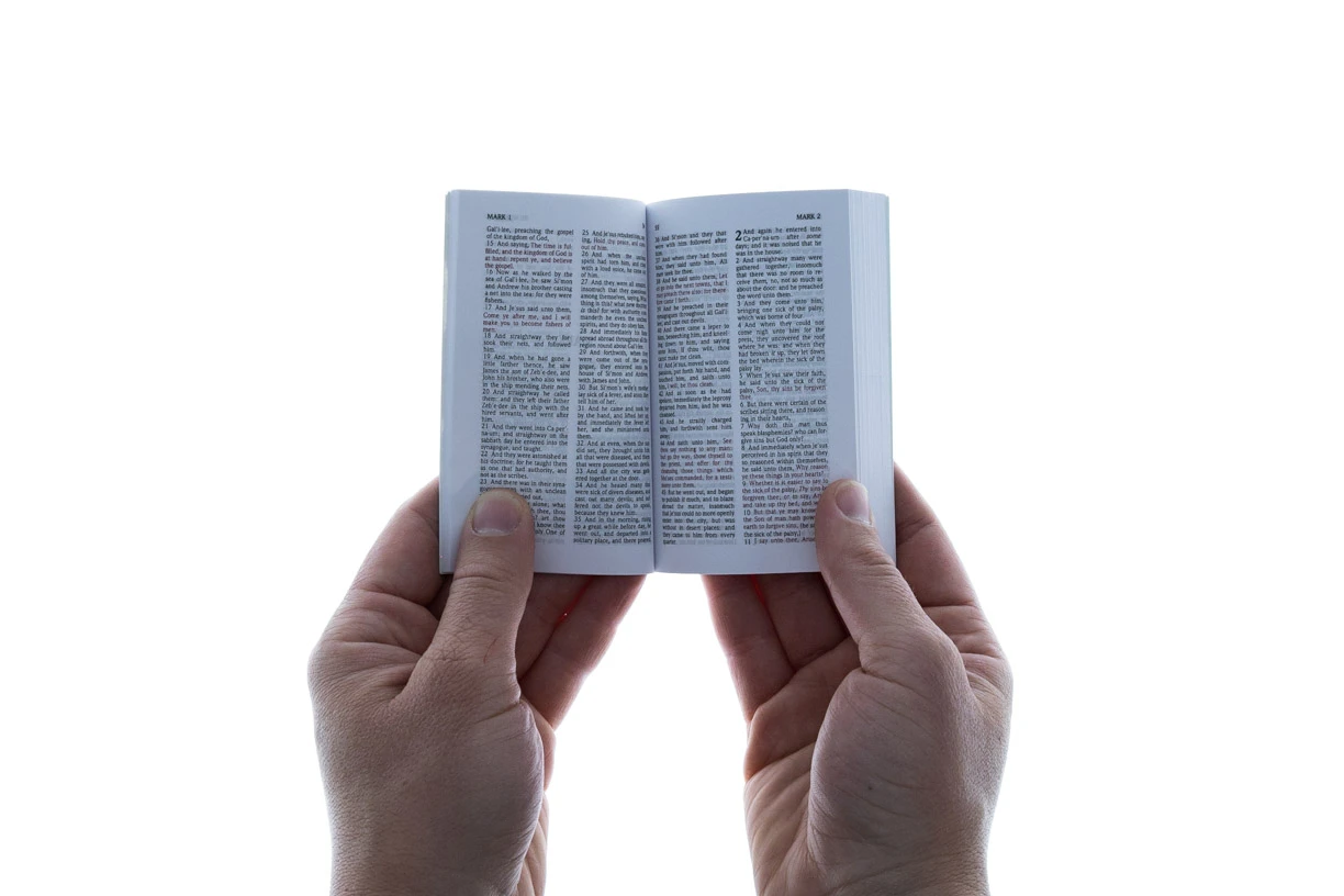 Paper Cover Children’s New Testament. Features words of Christ in red and two column format. 6pt type. 4 1/2 x 2 3/4.