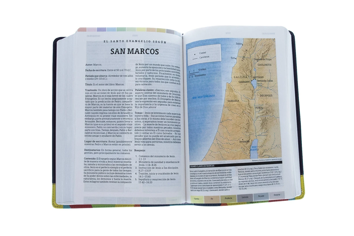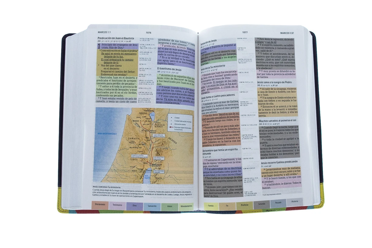 La Biblia de Estudio Arcoiris Reina Valera 1960 cuenta con un sistema Ășnico de «cĂłdigo de colores» que le permite al lector de manera fĂĄcil y rĂĄpida